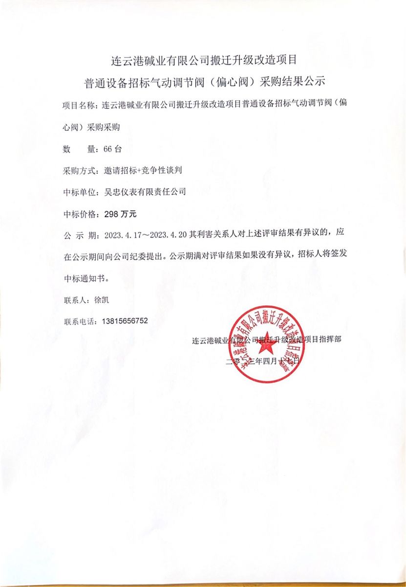 氣動(dòng)調(diào)節(jié)閥(偏心閥)采購(gòu)結(jié)果公示